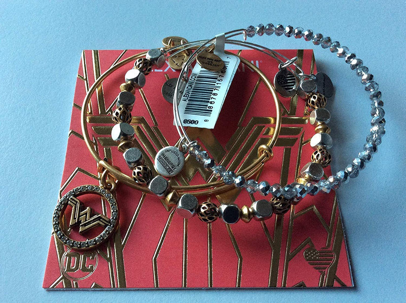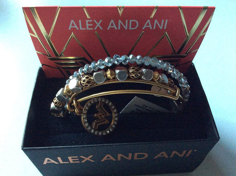 Alex and Ani Wonder Woman Crystal Emblem Set of 3 Rafaelian Gold Bangle Bracelet NWTBC