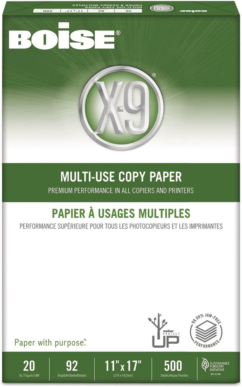 Boise OX9007 X-9 Multi-Use Copy Paper, 92 Bright, 20lb, 11 x 17, White, 2500 Sheets/Carton