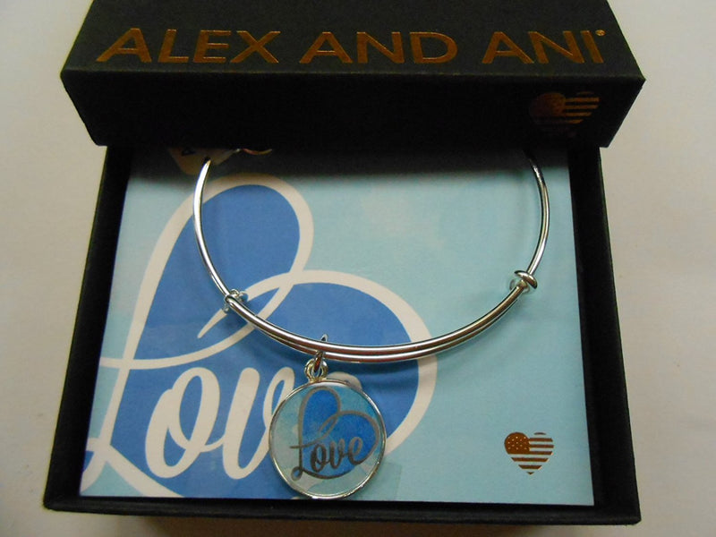 Alex and Ani Art Infusion Love Bangle Bracelet Shiny Silver Come With Black Gift Box