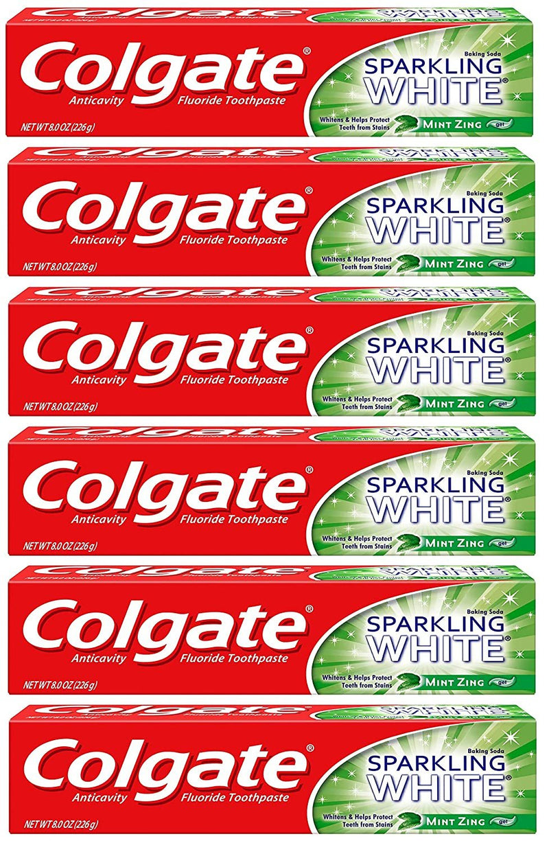 Colgate Sparkling White Whitening Toothpaste, Mint - 8 ounce (6 Pack)