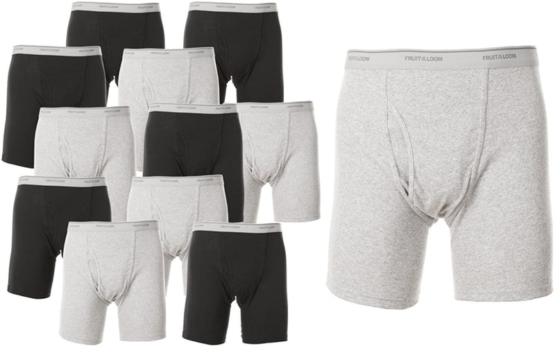 Crafted Comfort Stretch- Exposed Waistband- Black Heather Fruit of the Loom Men's Cotton Performance Boxer Briefs (12 Pack)
