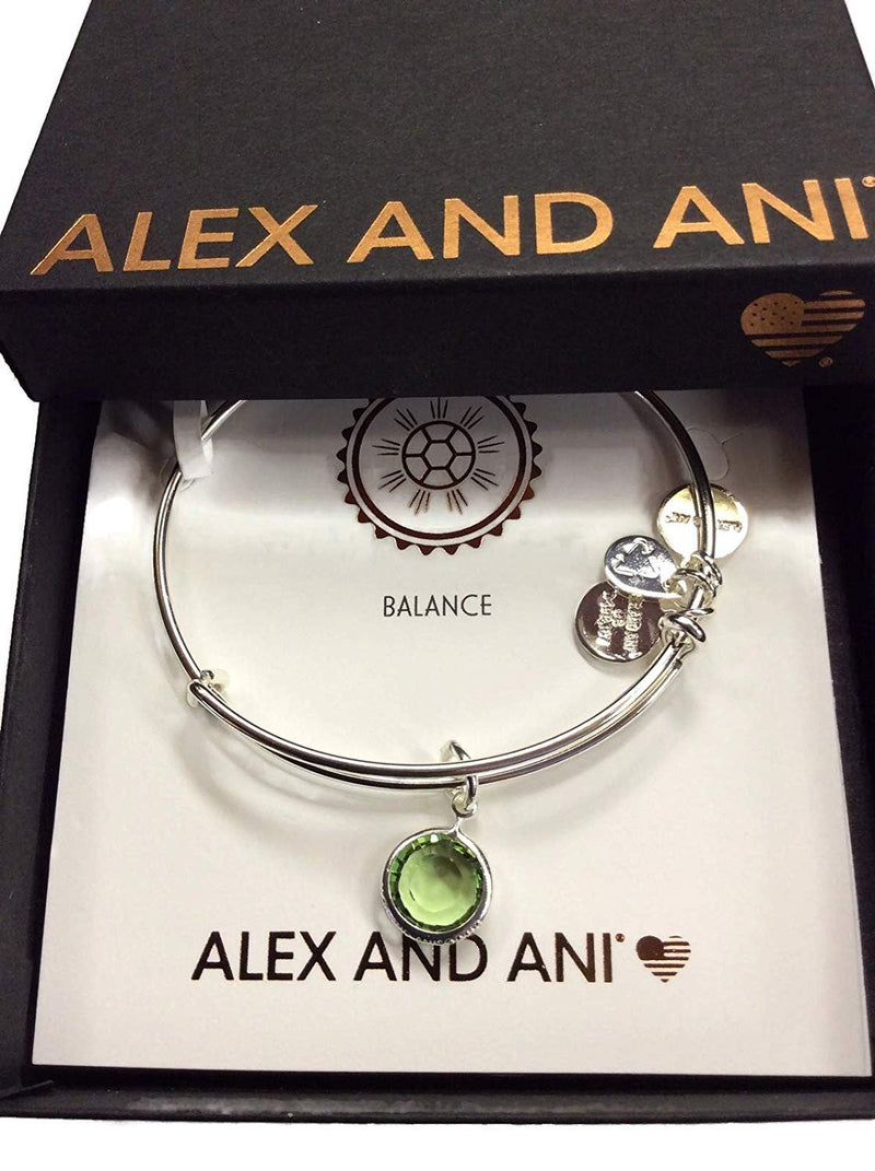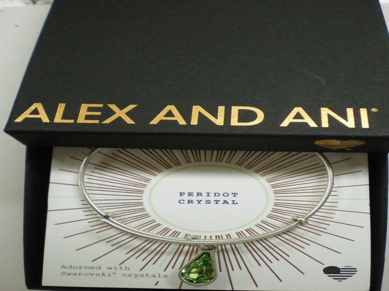 Alex and Ani August Color Code Peridot Bangle Bracelet Shiny Silver NWTBC