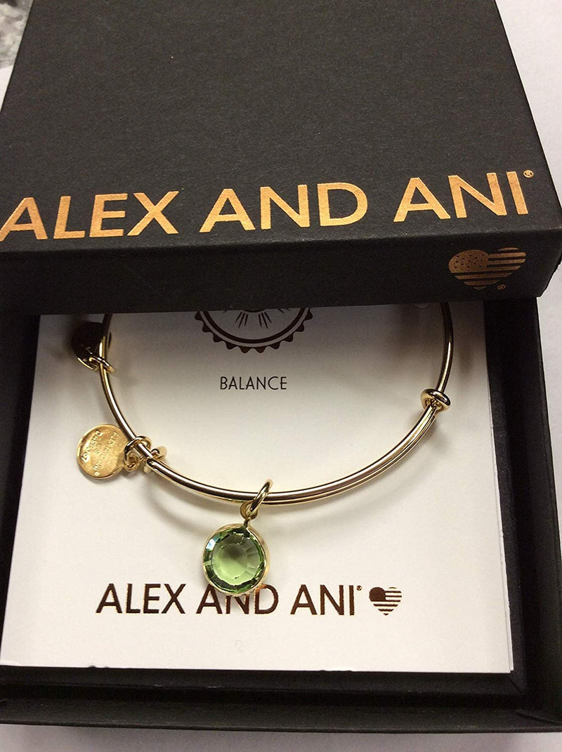 Alex and Ani August Color Code Peridot Bangle Bracelet Shiny Gold NWTBC