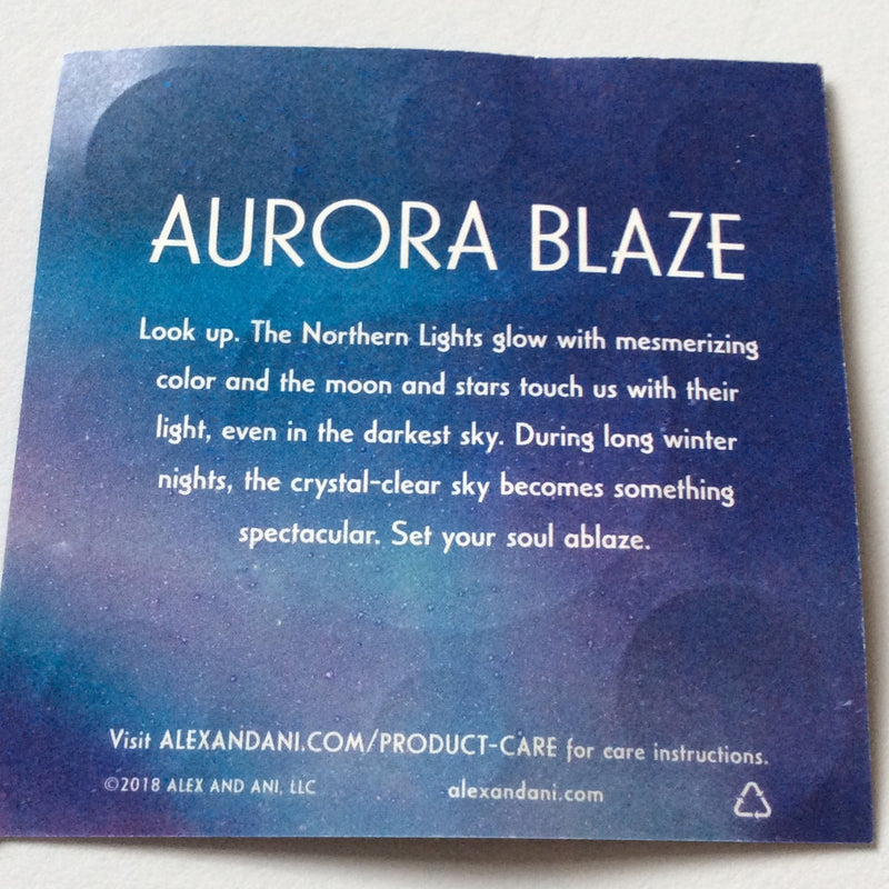 Alex and Ani Aurora Bangle Bracelet Metallic Blue Tag Box Card