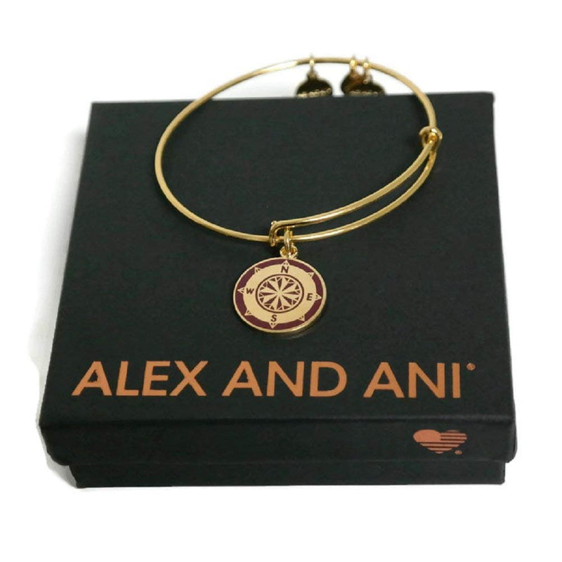 Alex and Ani Cabernet Compass Charm Bangle Yellow Gold Finish Bracelet, A15EB55YG