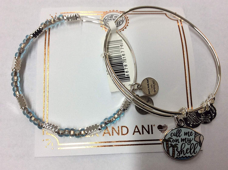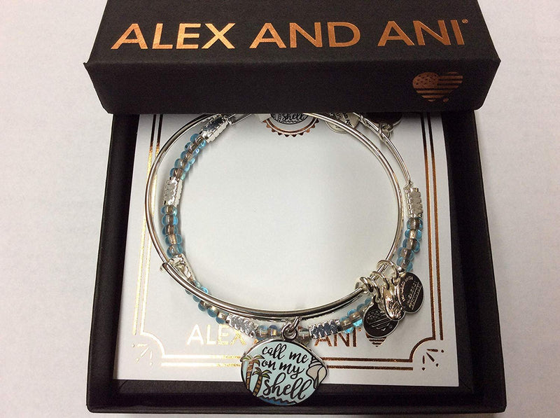 Alex and Ani Call Me On My Shell Set of 2 Bangle Bracelet Shiny Silver NWTBC