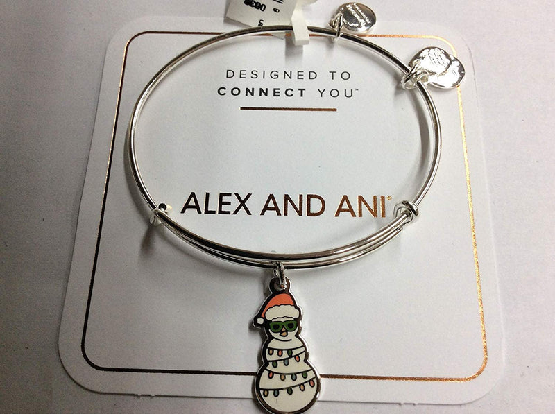 Alex and Ani Color Infusion, Holiday Snowman Bangle Bracelet Shiny Silver One Size