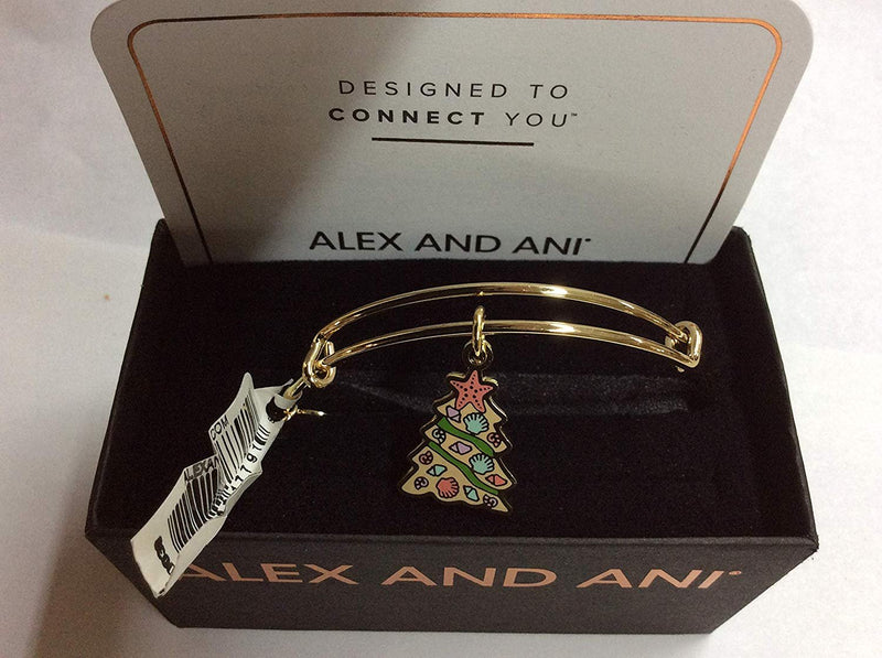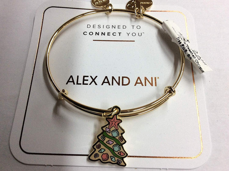 Alex and Ani Color Infusion, Seashell Christmas Tree Bangle Bracelet Shiny Gold One Size