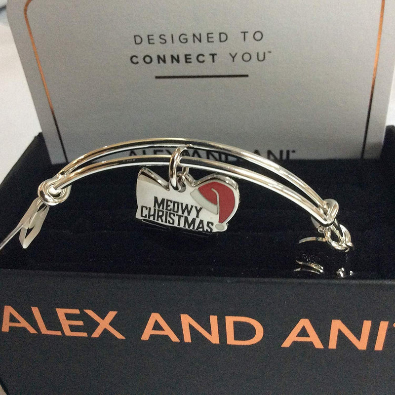Alex and Ani Color Infusion, Meowy Christmas Bangle Bracelet Shiny Silver One Size