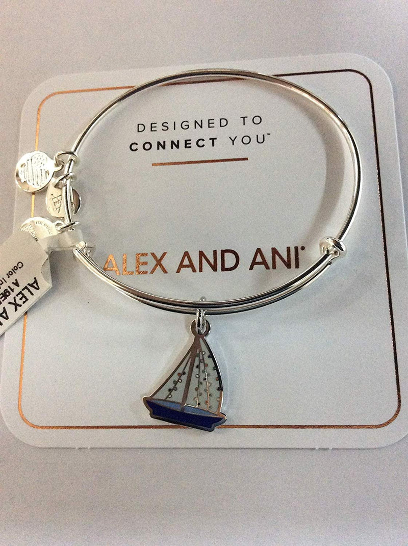 Alex and Ani Color Infusion, Holiday Sailboat Bangle Bracelet Shiny Silver One Size