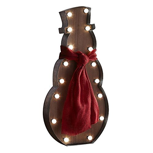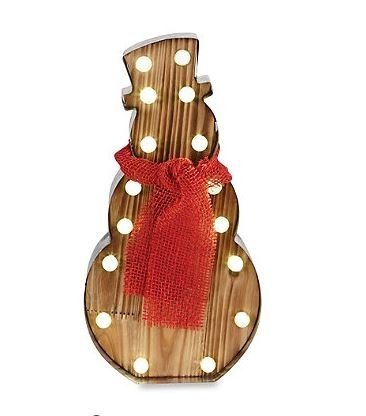 20" Metal LED Marquee Snowman Sign with Red Scarf