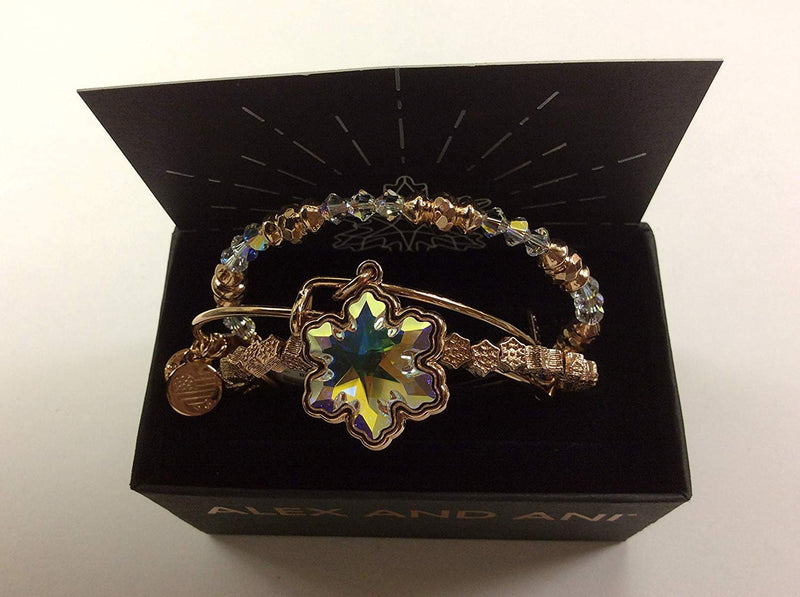 Alex and Ani Crystal Snowflake Set of 3 Bangle Bracelet Shiny Rose Tag Box Card