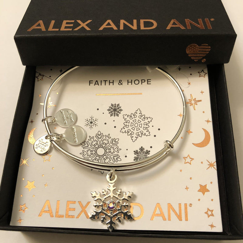 Alex and Ani Crystal Snowflake Set of 3 Bangle Bracelet Shiny Silver Tag Box Card