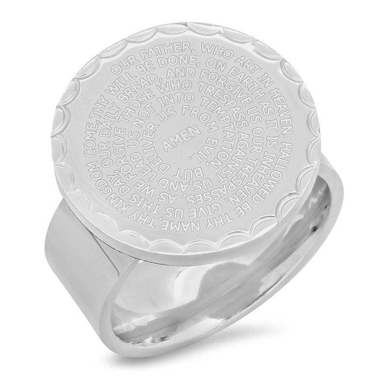 Ladies Stainless Steel Our Father Prayer Ring Circle