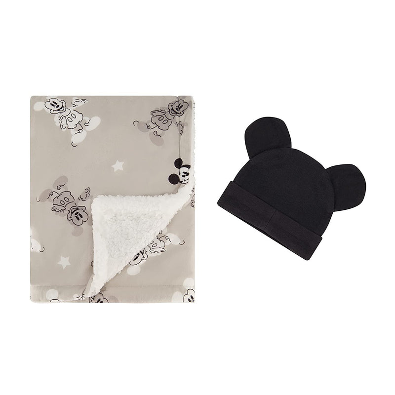 Disney Fuzzy Mink Baby Blanket, Double Sided Ultra-Soft and Plush Mink and Sherpa Newborn Throw, Measures 30x40 Inches, Includes Matching Infant Cap Hat