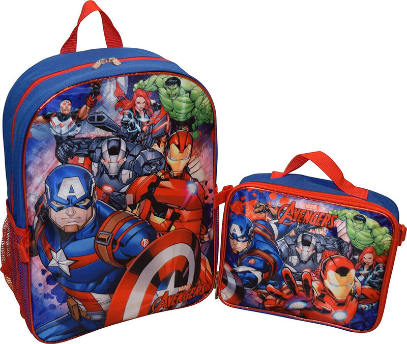 Marvel Avengers 15" Backpack with Lunch Bag - Iron Man, Captain America