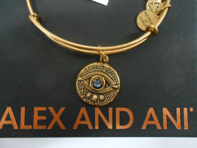 Alex and Ani Evil Eye Bangle Bracelet Rafaelian Gold Finish With Box and Card