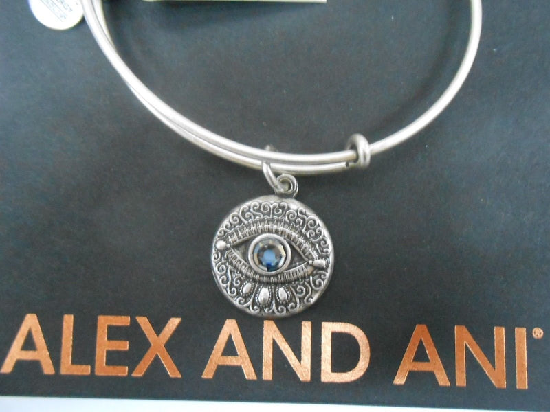 Alex and Ani Evil Eye Bangle Bracelet Rafaelian Silver Finish With Box and Card