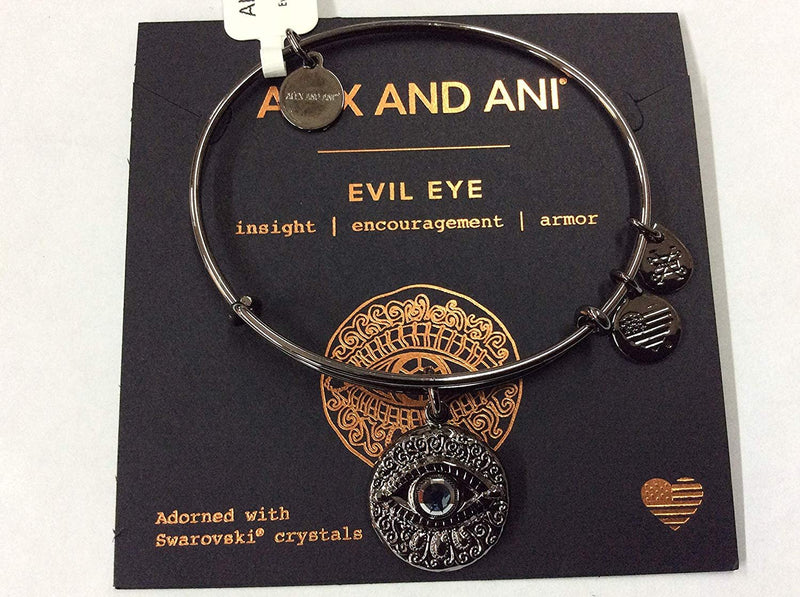 Alex and Ani Evil Eye Bangle Bracelet Midnight Silver Tag Box Card