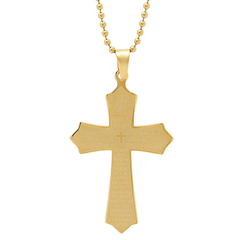Men's Ladies Unisex Stainless Steel 'Our Father' Cross Pendant Religous Prayer