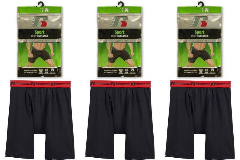 NEW RUSSELL SPORT PERFORMANCE MEN'S 1 OR 3 PACK BOXER BRIEFS S-2X SPANDEX!!