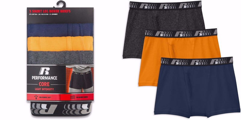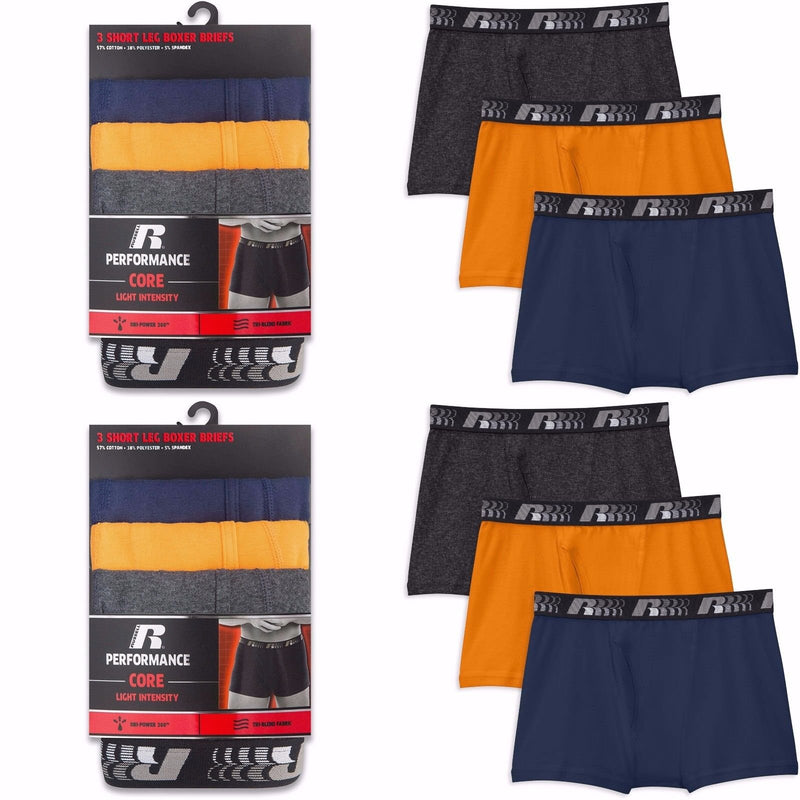 Russell Core Performance Men's Short Leg Boxer Briefs Sizes M-2XL 3pk or 6pk