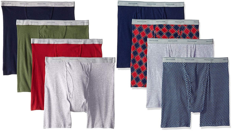 Fruit of the Loom Men's Boxer Briefs Sizes 2X 8-Pack Assorted Cotton