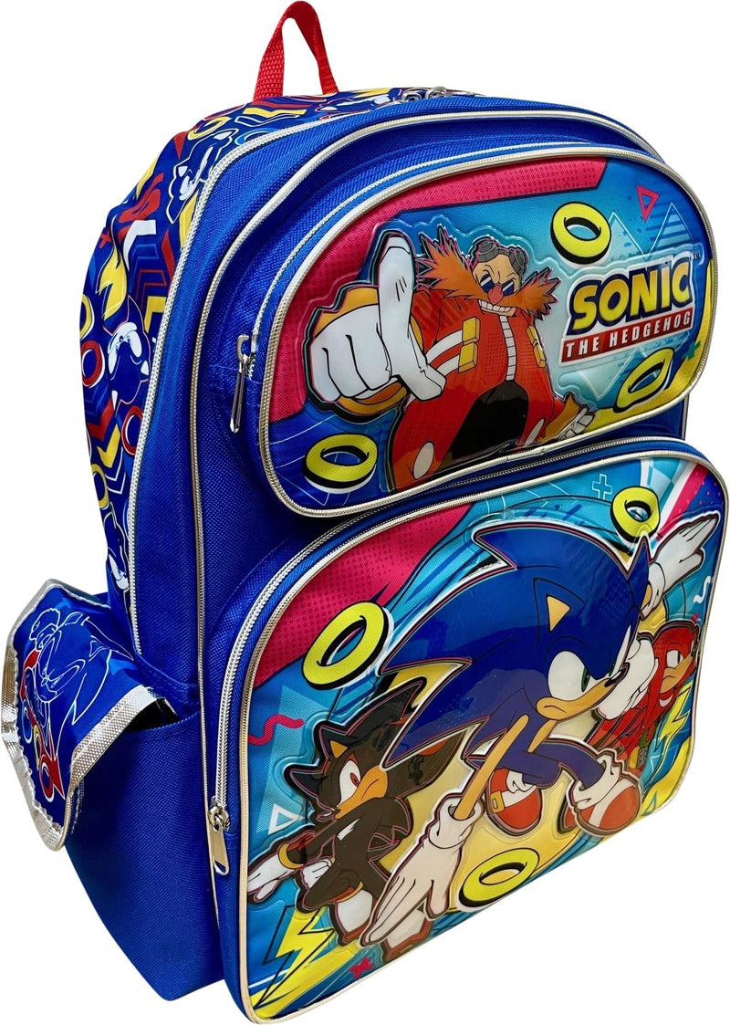 Ruz Sonic The Hedgehog Kid’s Licensed 16” Large School Backpacks with Multiple Pockets
