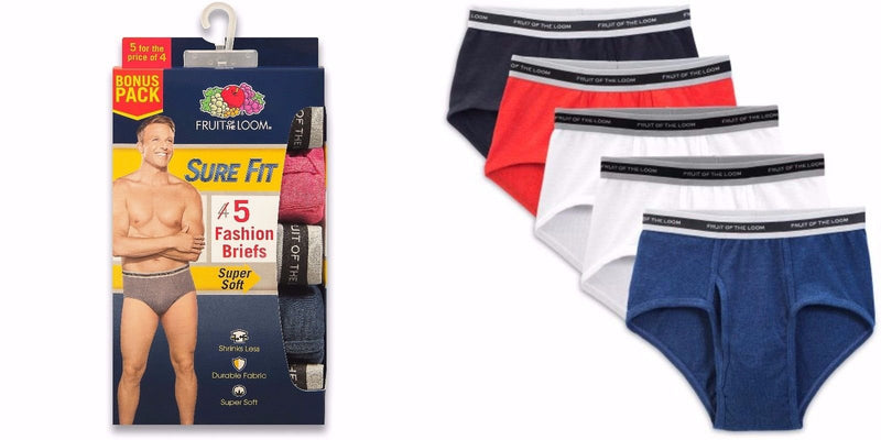Fruit of the Loom Men's Fashion Briefs SURE FIT 5-PACK Assorted Color Size S-3XL