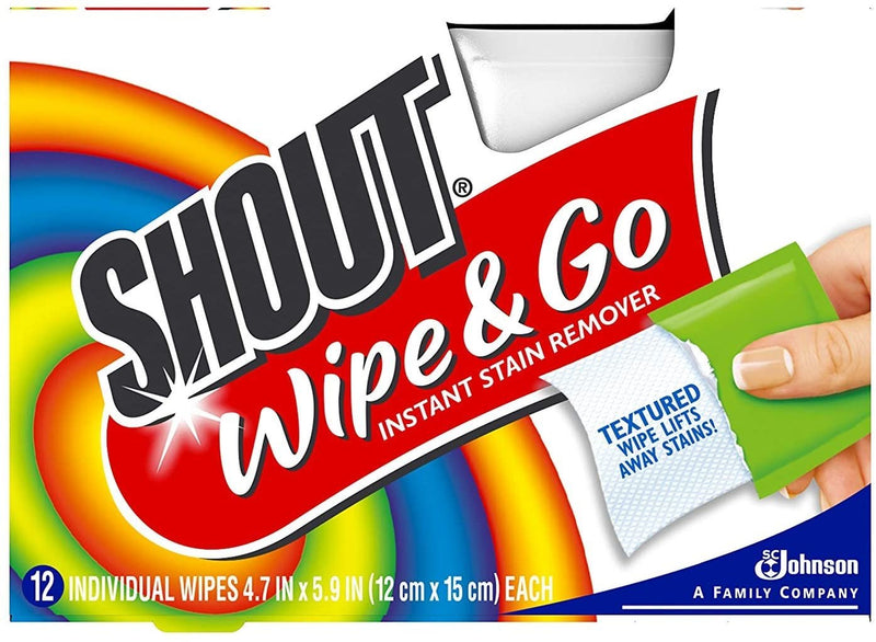 Shout Wipe & Go Instant Stain Remover Wipes, 12 CT (12 Pack of 12), Multi