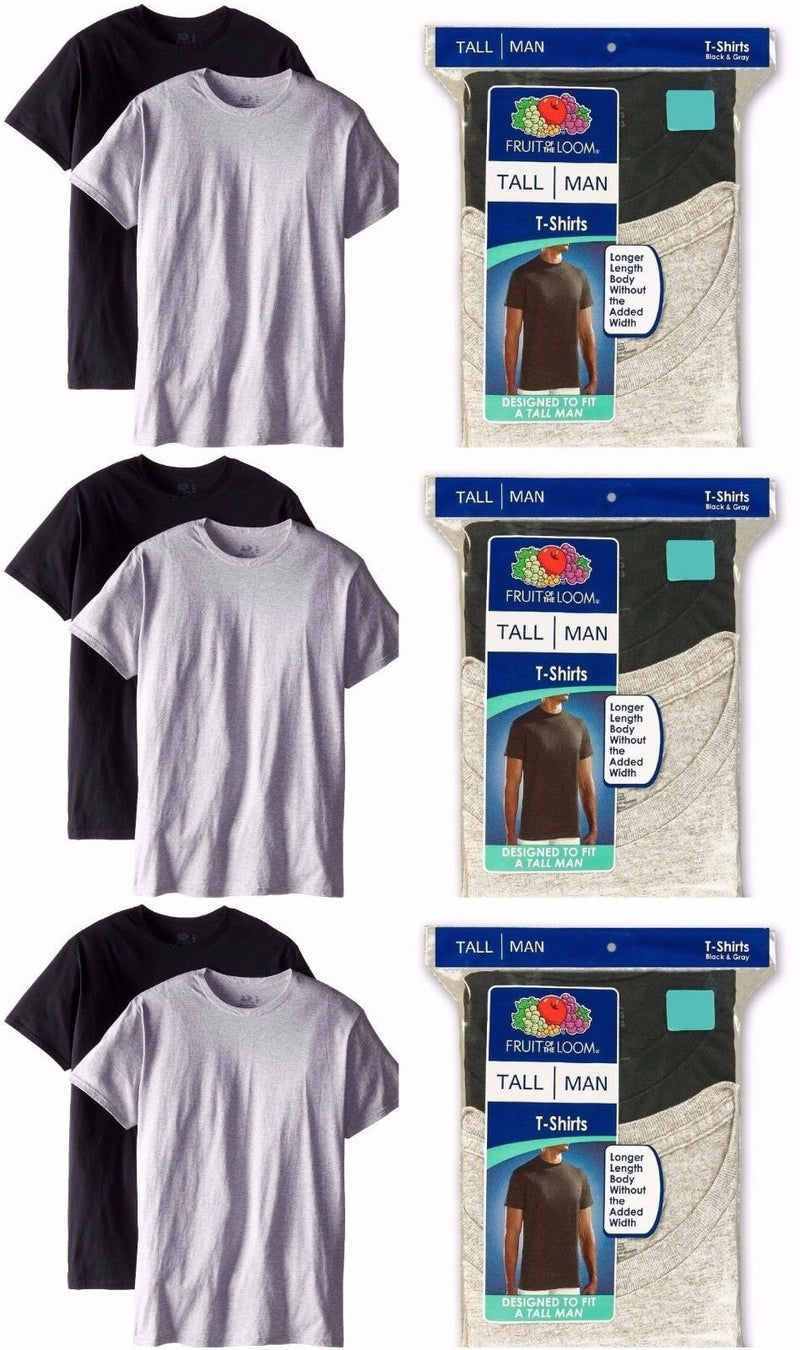 Fruit of the Loom Men's Tall Man Crew Neck T-Shirt's Black And Gray 6-PACK