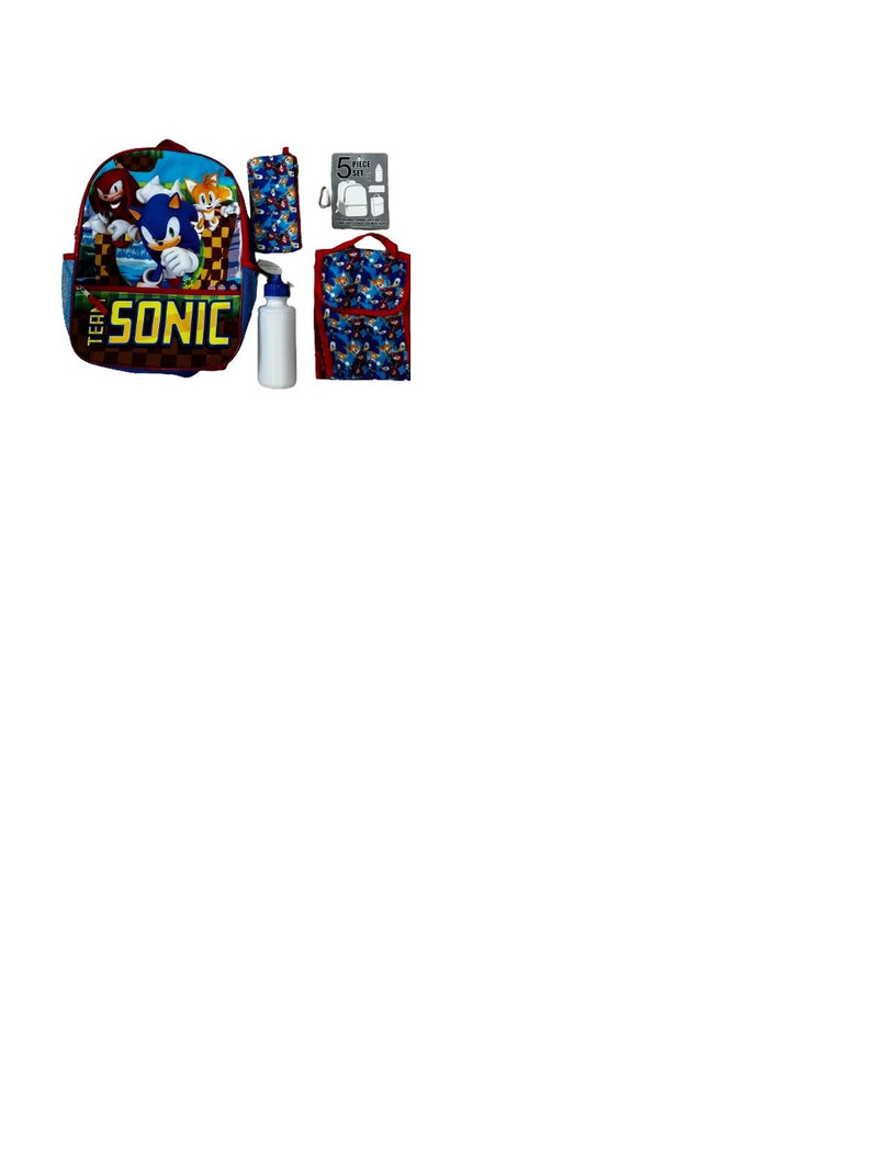 SONIC 5PC SET 16" BACKPACK, LUNCH,PENCILCASE,BOTTLE,CARABINER