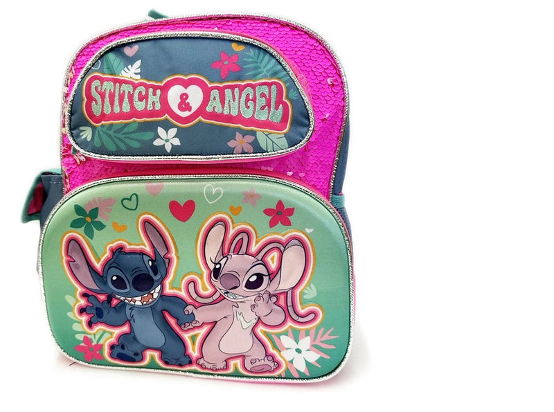 Stitch & Angel 3D Molded Magic Sequins 12" Medium Toddler Backpack