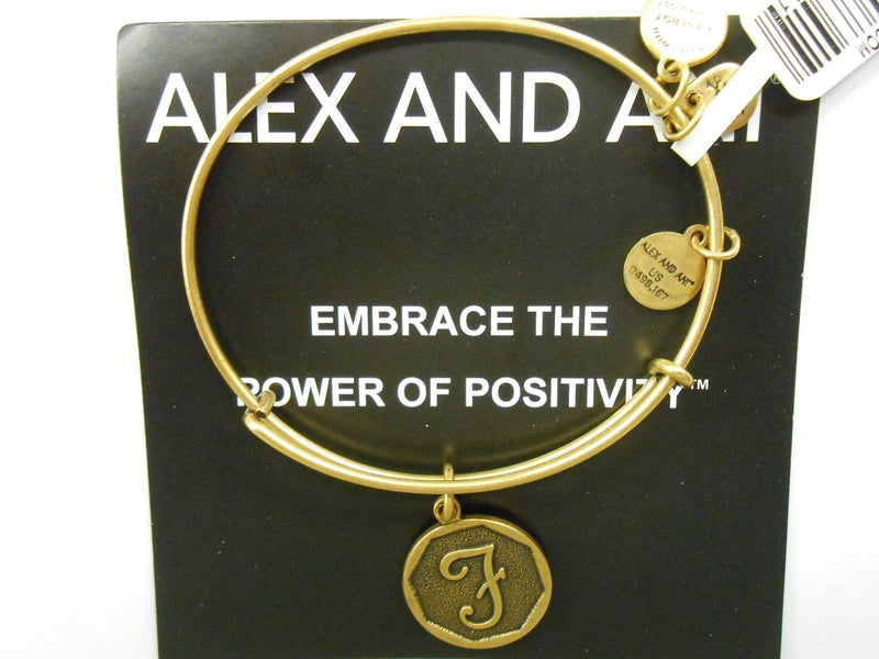 Alex and Ani INITIAL F Expandable Wire Bracelet Rafaelian Gold NWTBC