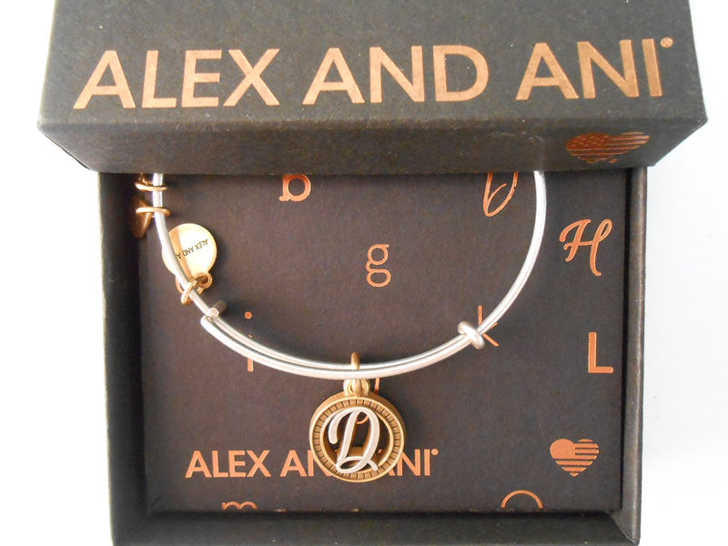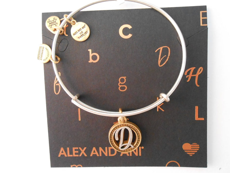 Alex and Ani Initial D Two-Tone Charm Bangle Bracelet - Rafaelian Gold and Silver Finish - A18EBINT04TTRS