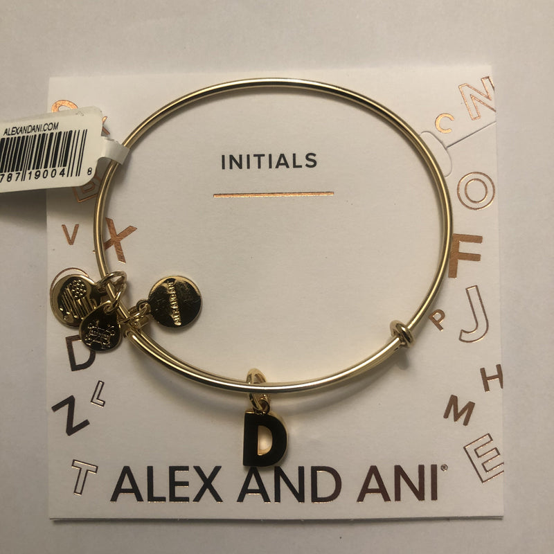 Alex and Ani Initial D III Bangle Bracelet Shiny Gold One Size, A20EBINT04SG