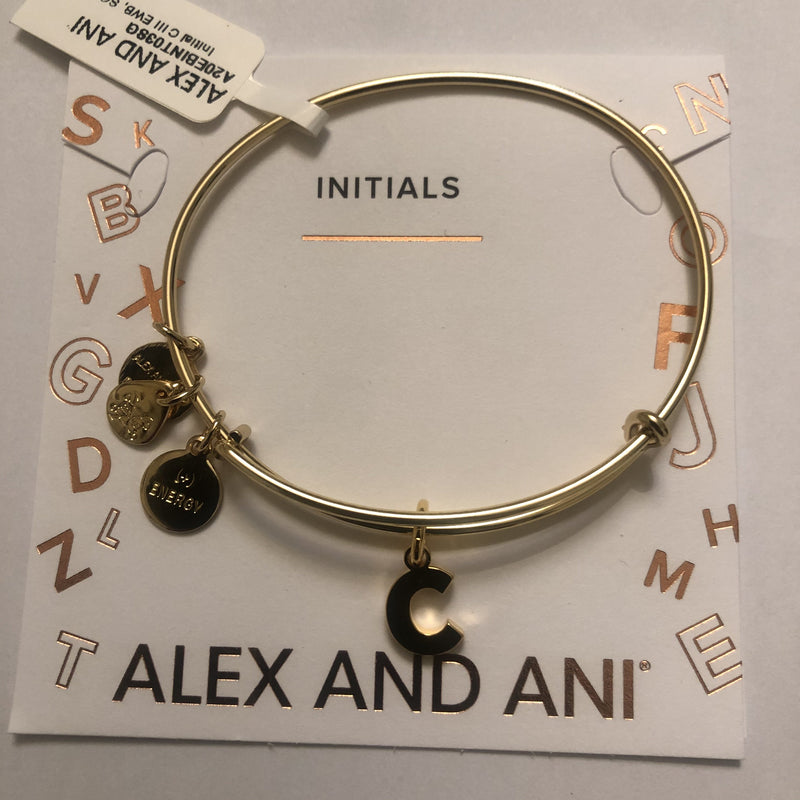 Alex and Ani Initial C III Bangle Bracelet Shiny Gold One Size, A20EBINT03SG