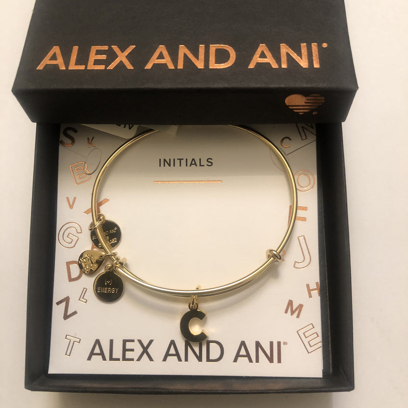 Alex and Ani Initial C Bangle Bracelet TWO-TONE New Tag Box Card 2018