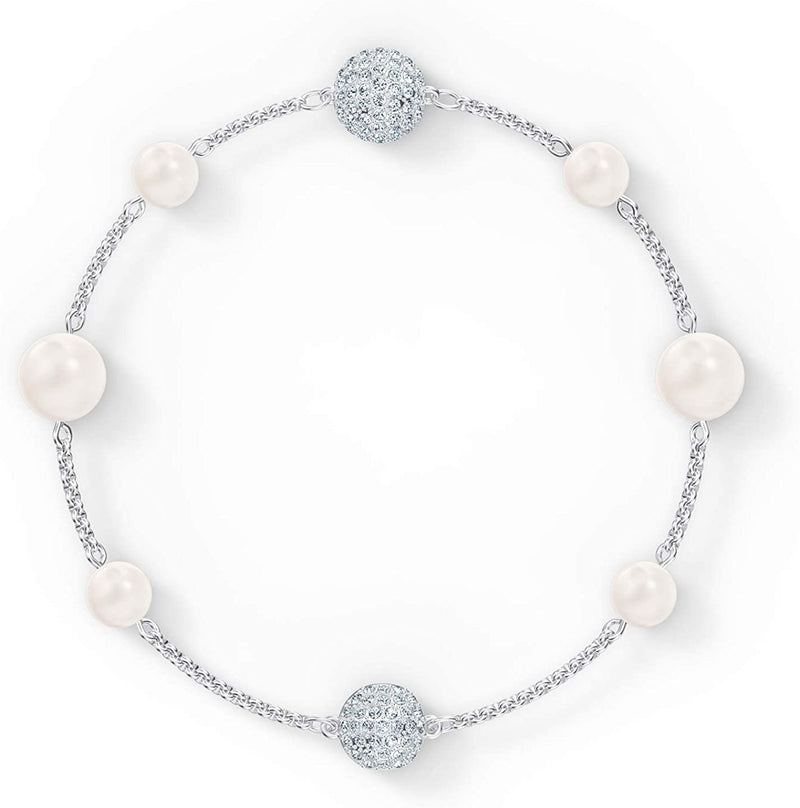 SWAROVSKI Authentic Remix Collection Crystal Pearl Strand, White, Rhodium Plated, Large