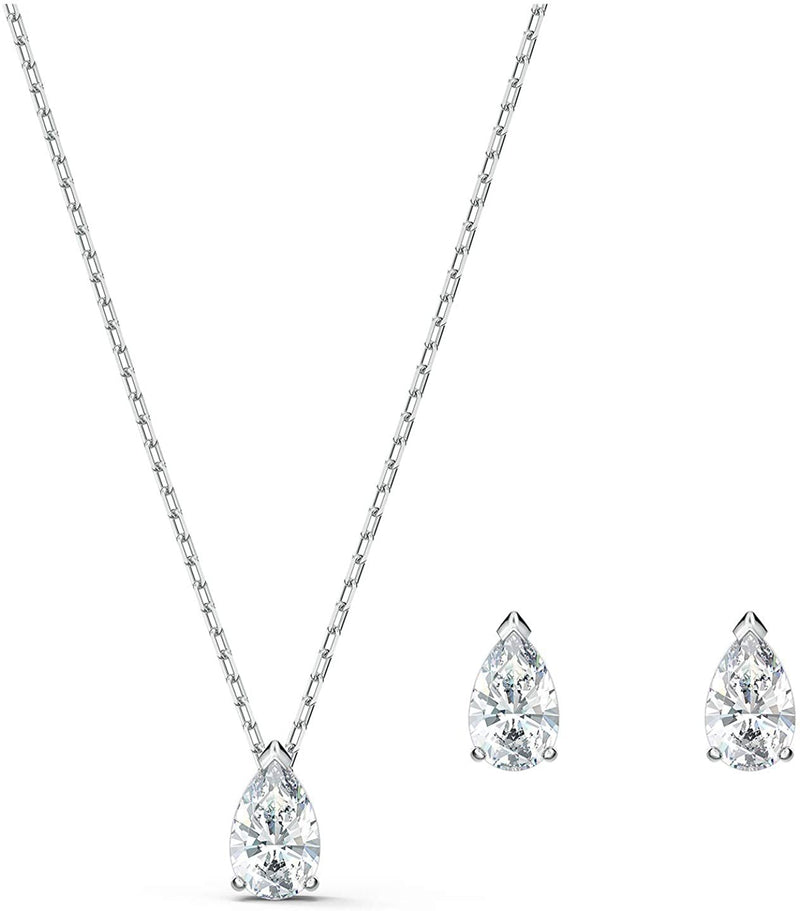 Swarovski Attract Rhodium Plated Pear Necklace and Earrings Jewelry Set