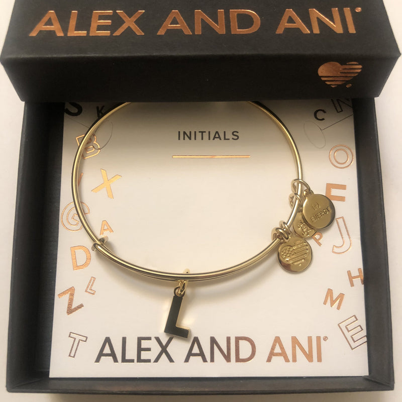 Alex and Ani INITIAL L Expandable Wire Bracelet Rafaelian Gold NWTBC