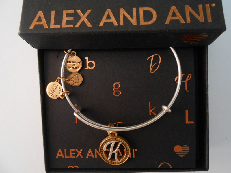 Alex and Ani Initial K Two-Tone Charm Bangle Bracelet - Rafaelian Gold and Silver Finish - A18EBINT11TTRS