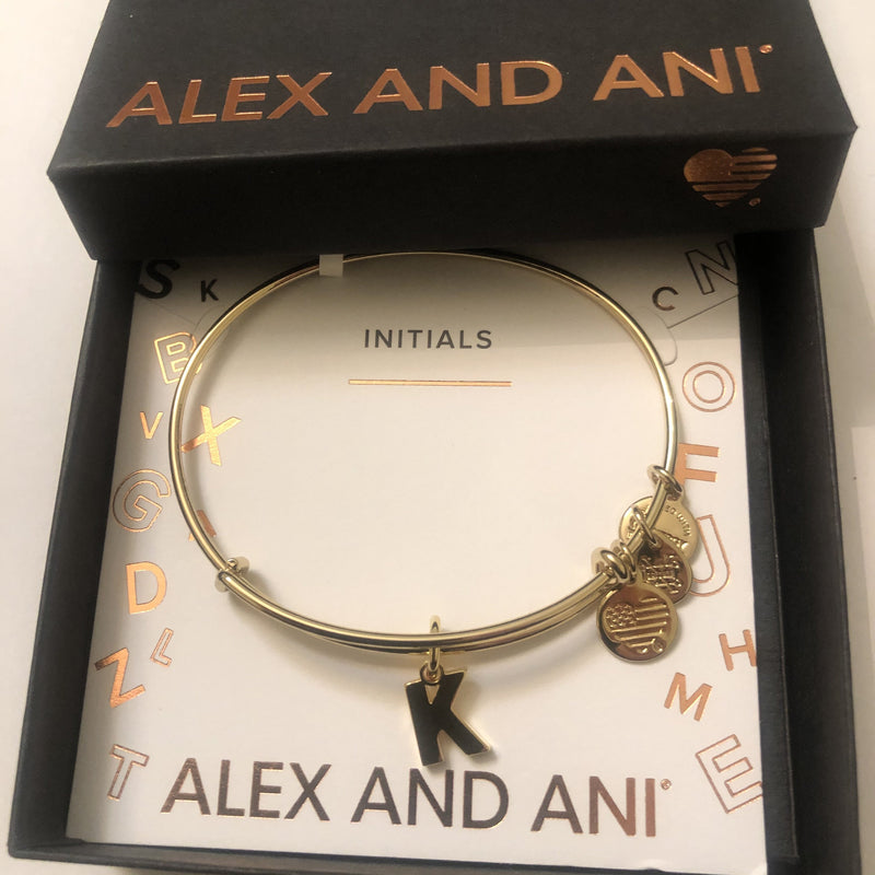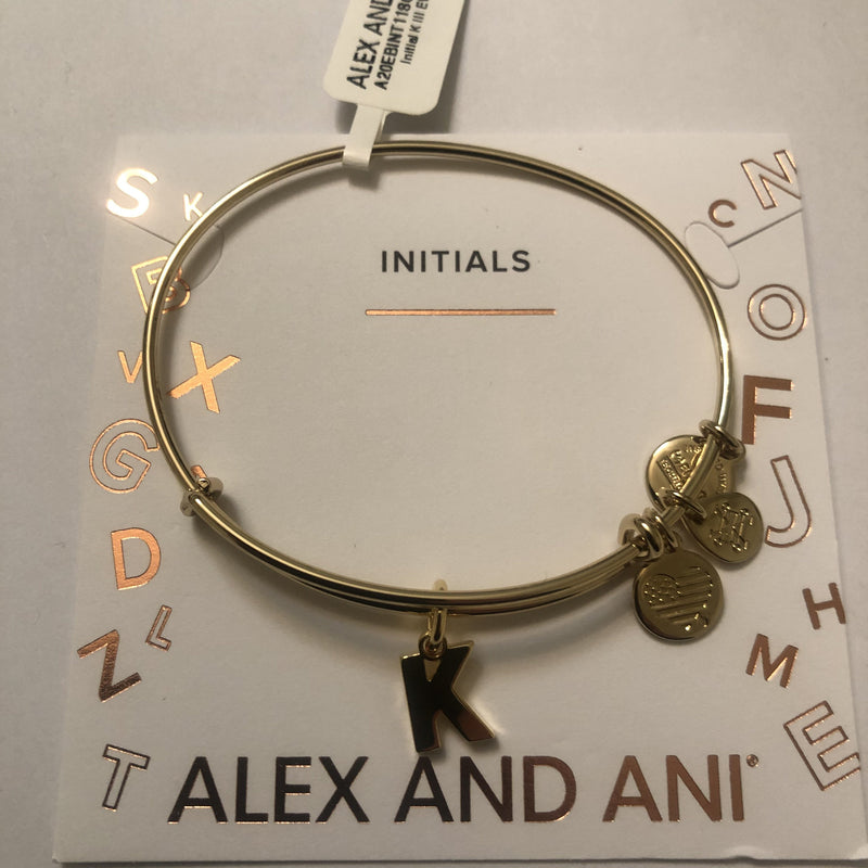 Alex and Ani Initial K III Bangle Bracelet Shiny Gold One Size (A20EBINT11SG)
