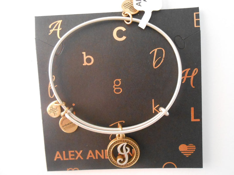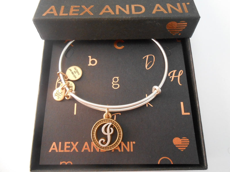 Alex and Ani Initial J Two-Tone Charm Bangle Bracelet - Rafaelian Gold and Silver Finish - A18EBINT10TTRS