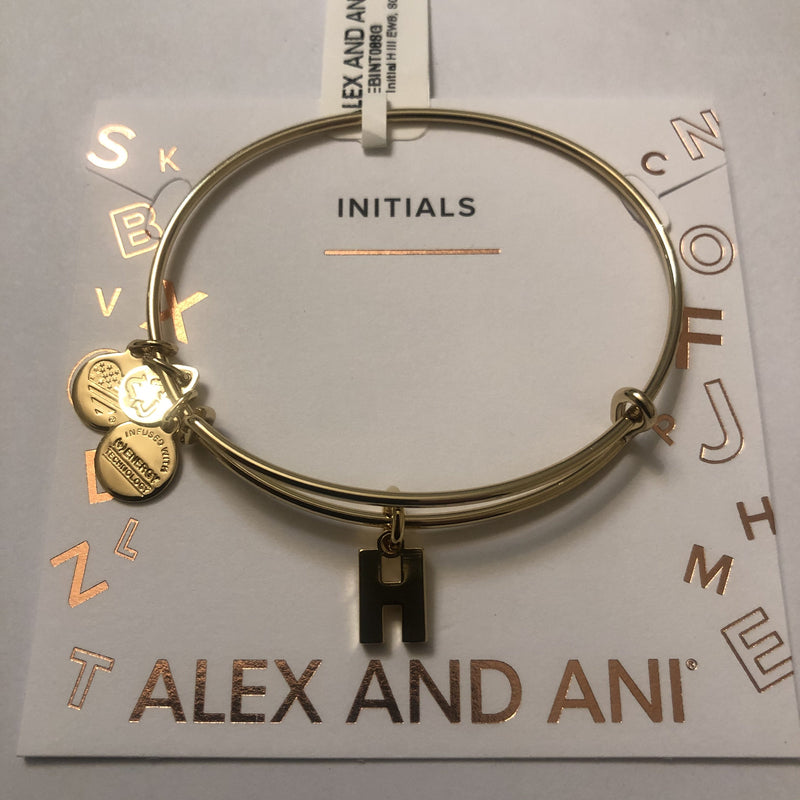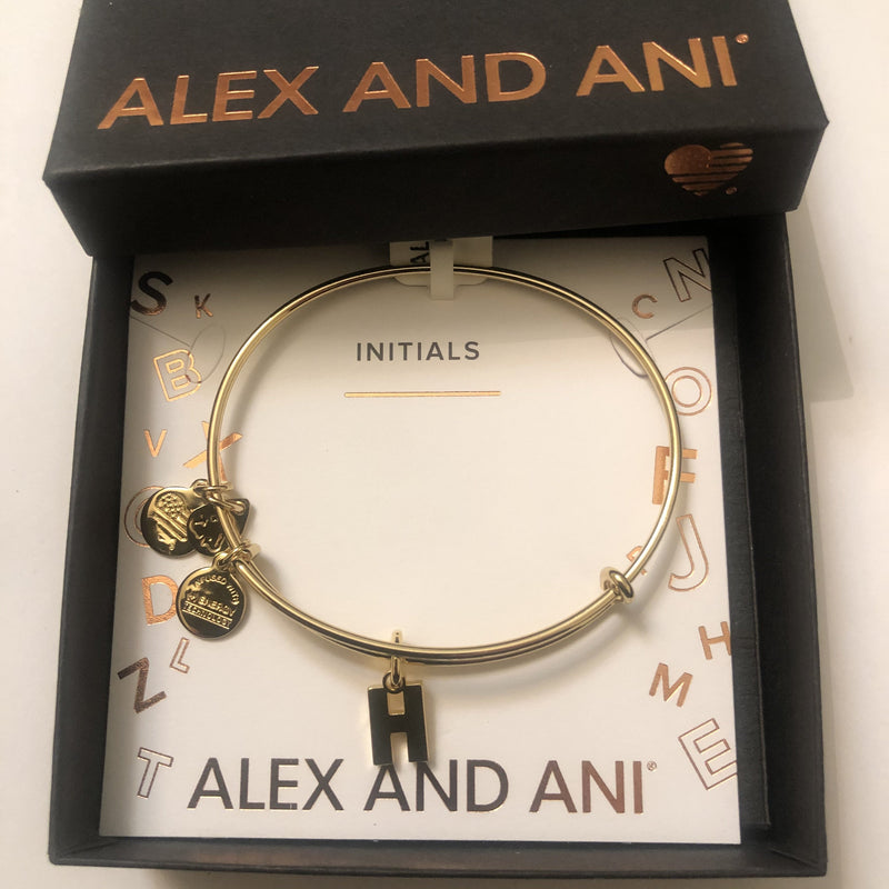 Alex and Ani Initial H III Bangle Bracelet Shiny Gold One Size