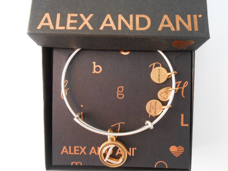 Alex and Ani Initial L Two-Tone Charm Bangle Bracelet - Rafaelian Gold and Silver Finish - A18EBINT12TTRS