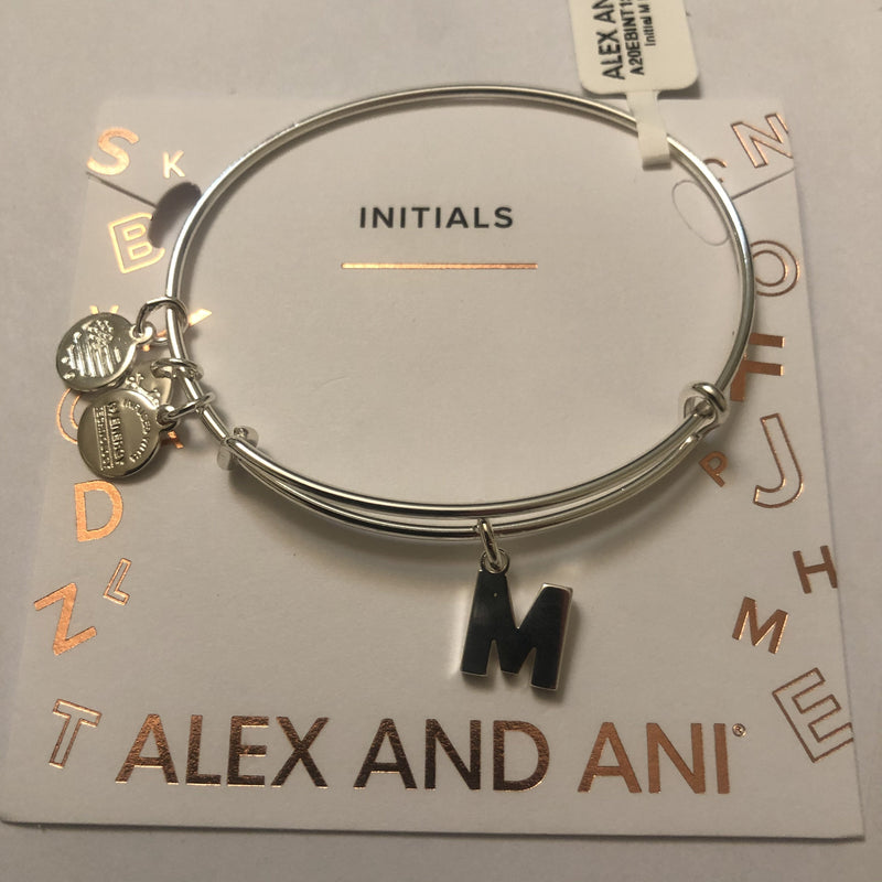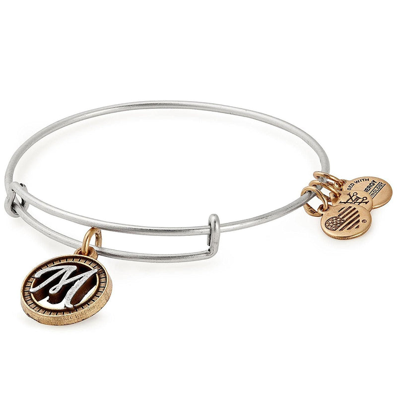 Alex and Ani Initial M Two-Tone Charm Bangle Bracelet - Rafaelian Gold and Silver Finish - A18EBINT13TTRS