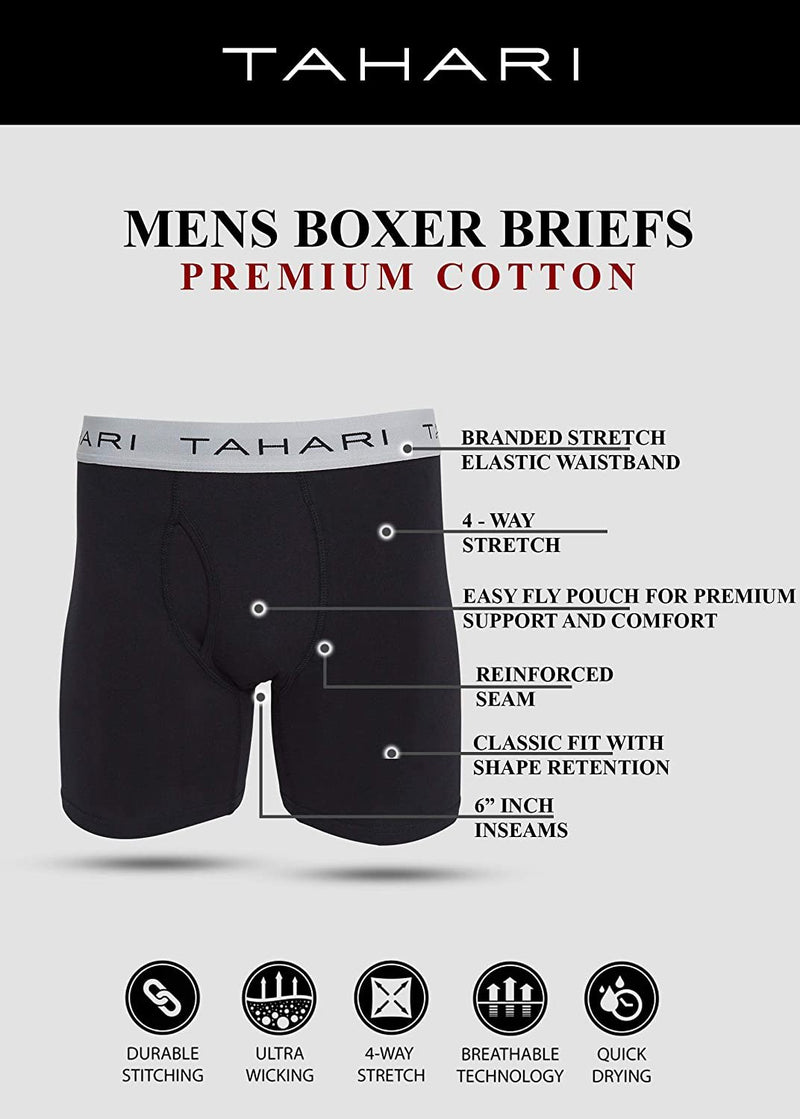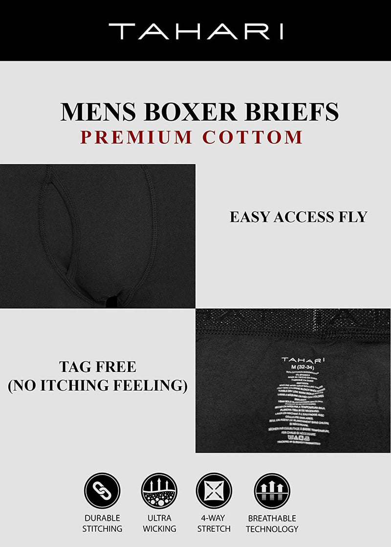Tahari Mens Underwear Multi Pack Premium Comfort Cotton Boxer Brief Set S,M,L,XL
