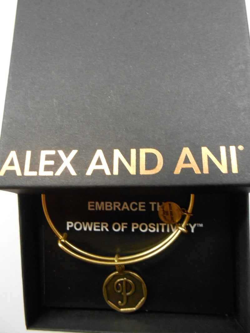 Alex and Ani INITIAL P Charm Bangle Bracelet Raf Gold New W/Tag Box Card