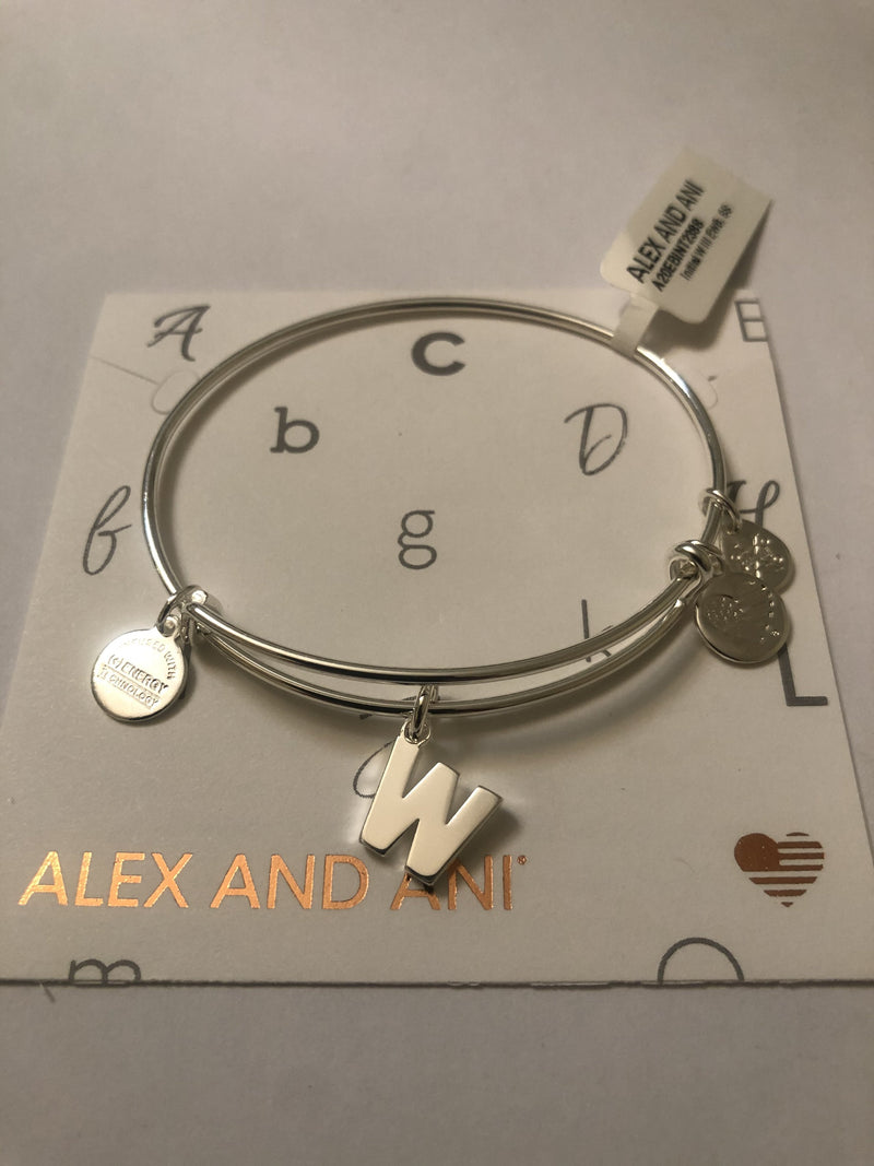 Alex and Ani Initial W III Bangle Bracelet Shiny Silver One Size
